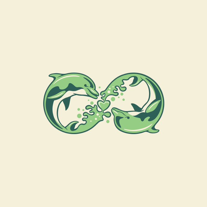The Flow Mates design is about natural coherence. The kind that happens when you’re truly in your body, in the moment, in the field. Two dolphins in an infinite loop around a shared heart. Not chasing. Just flowing.
