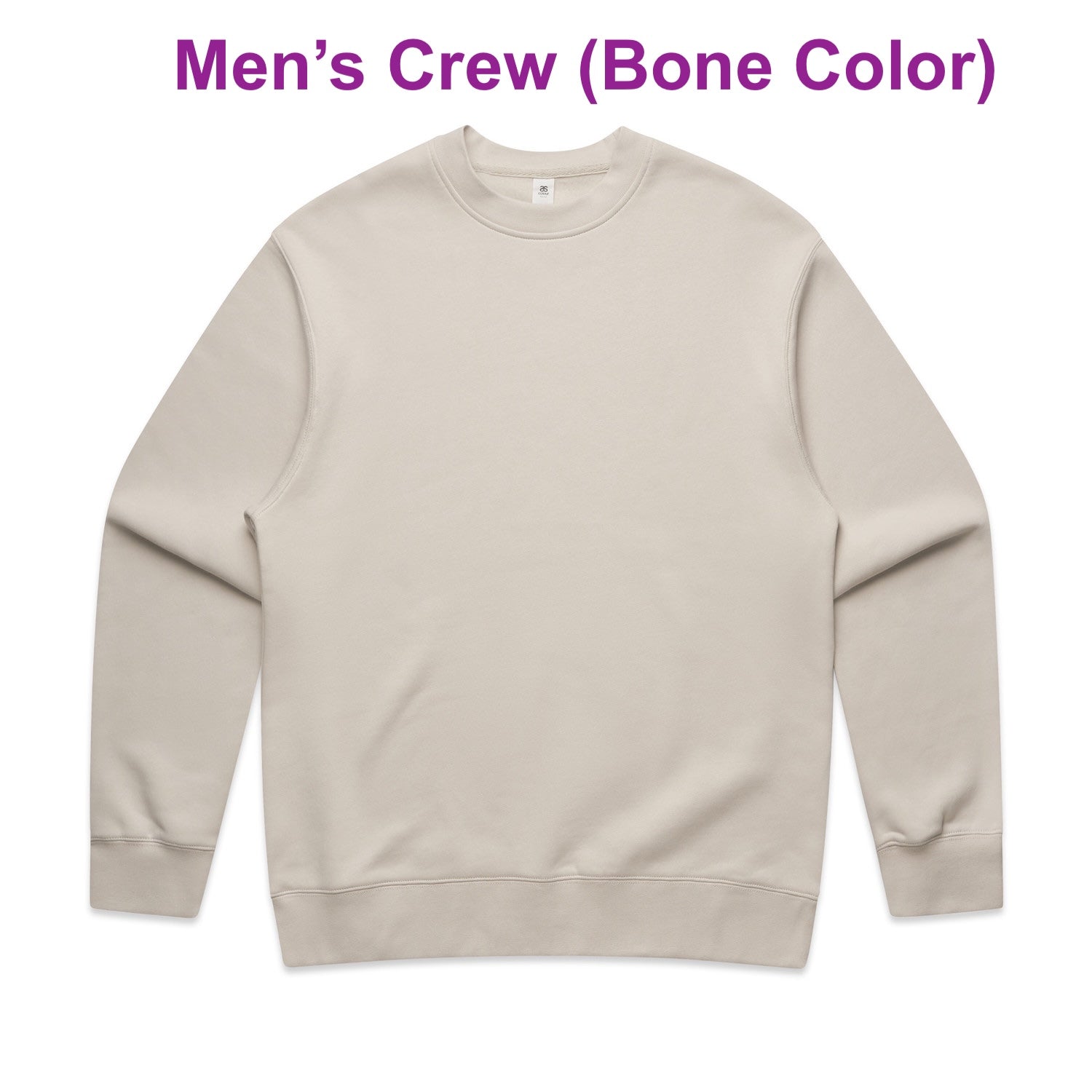 If you’ve purchased a hoodie or crew from me before, note that this fit runs more relaxed and slightly baggier so please check the size chart to get the feel you want.