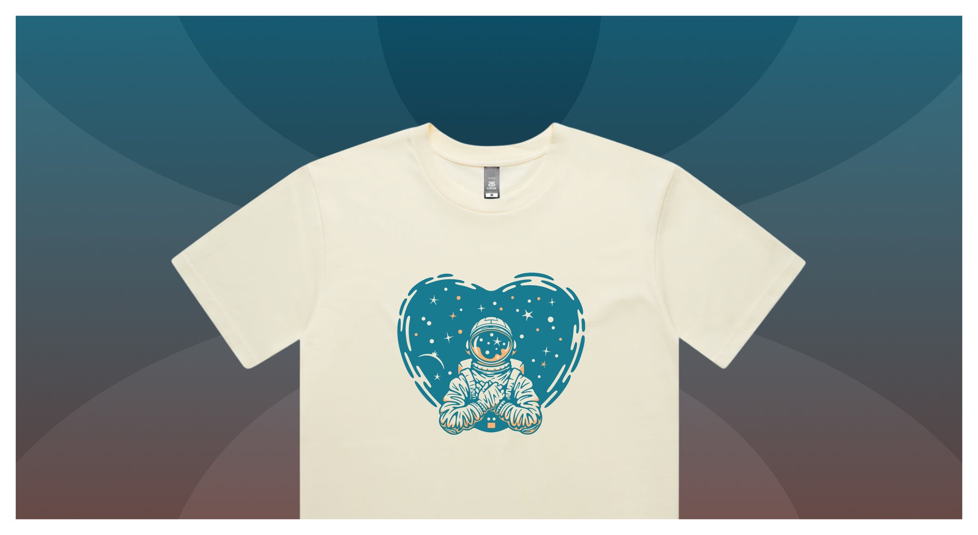 The LoveNaut design is what happens when a single heart becomes the center of a galaxy. The astronaut isn’t just sitting still. They’re tuning in so deeply, the universe responds.
